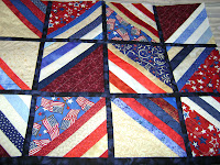 The next step is to join the blocks together by attaching the next block to the other side of the 1 1/8" strip. This gives you the sashing on the back of the quilt. Do that to each block in the row.